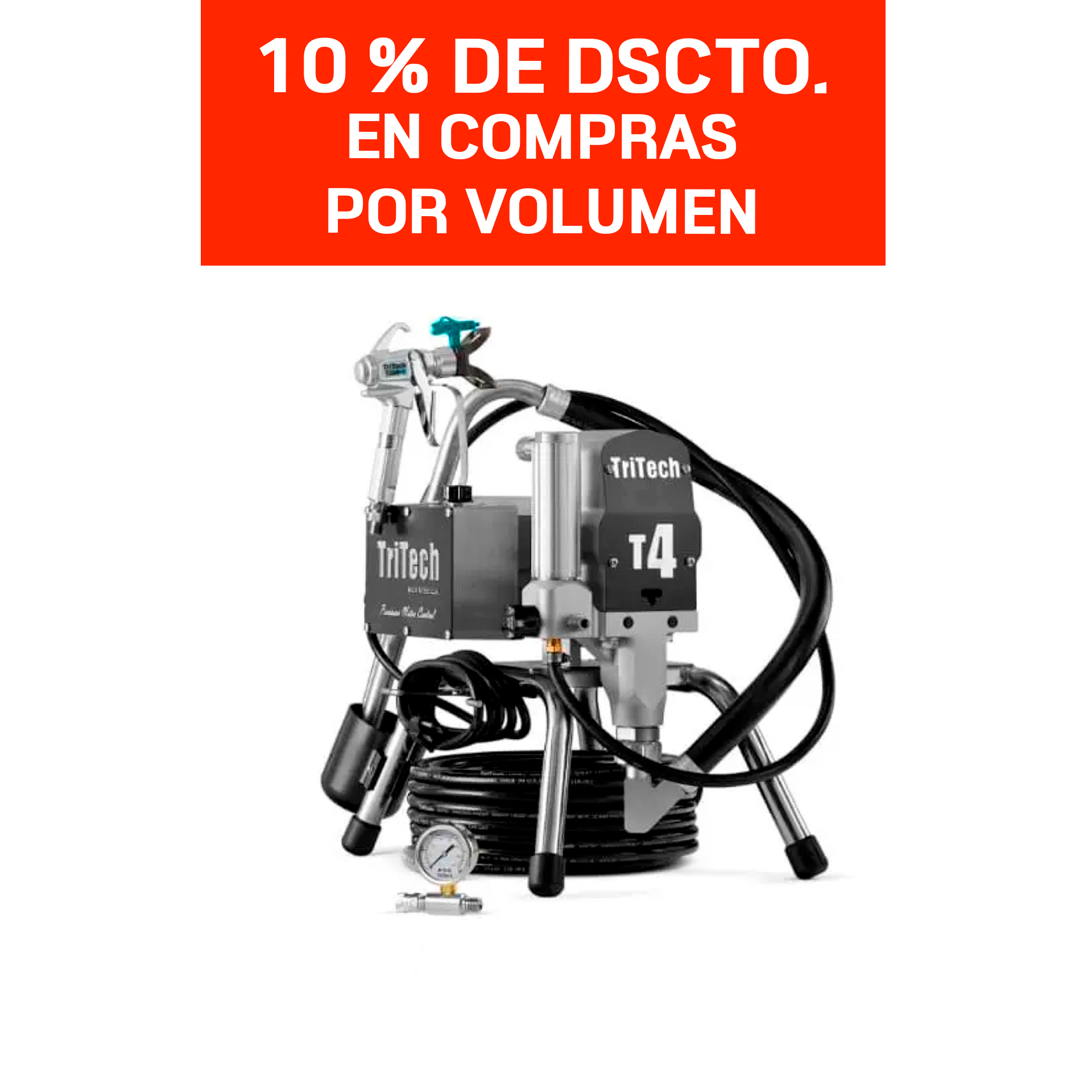 El equipo T4 airless eléctrico (TriTech T4) de fabricación americana, es de diseño innovador y utiliza materiales exclusivos de alta calidad para lograr procesos de fabricación eficientes. El resultado obteniendo es un equipo pulverizador duradero y de alta calidad.